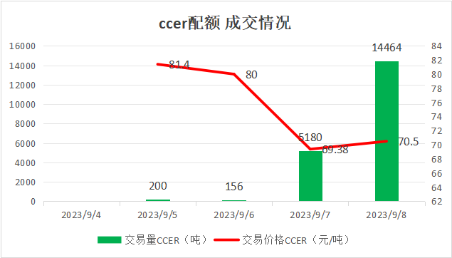 CCER最高成交价81.4元/吨,最低成交价69.38元/吨,本周五收盘价为70.5元/吨。