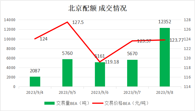 CCER最高成交价127.5元/吨,最低成交价119.18元/吨,本周五收盘价为123.77元/吨。