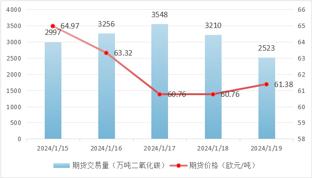 本周欧盟碳市场期货成交量为1.55亿吨。