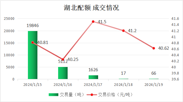 最高成交价41.5元/吨,最低成交价40.25元/吨,本周五收盘价为40.62元/吨。