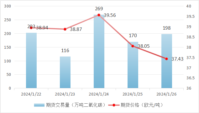 本周欧盟碳市场期货成交量为1.57亿吨。