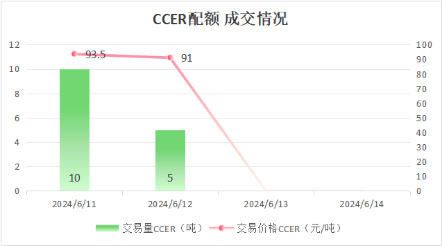 本周CCER配额总成交量15吨,总成交额1390元。