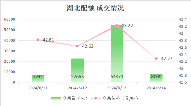 最高成交价43.22元/吨,最低成交价42.27元/吨,本周五收盘价为42.27元/吨。