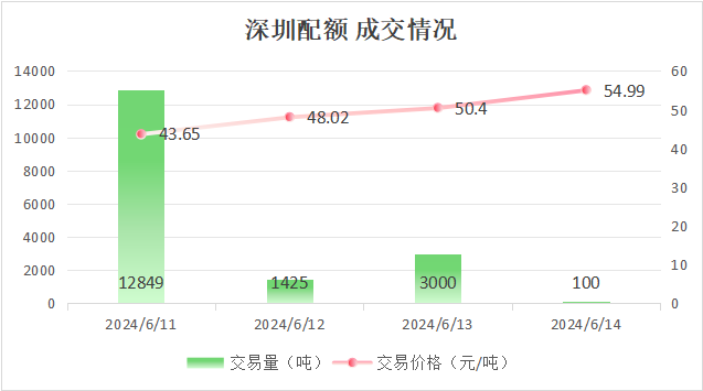 最高成交价50.4元/吨,最低成交价48.9元/吨,本周五收盘价为50.4元/吨。