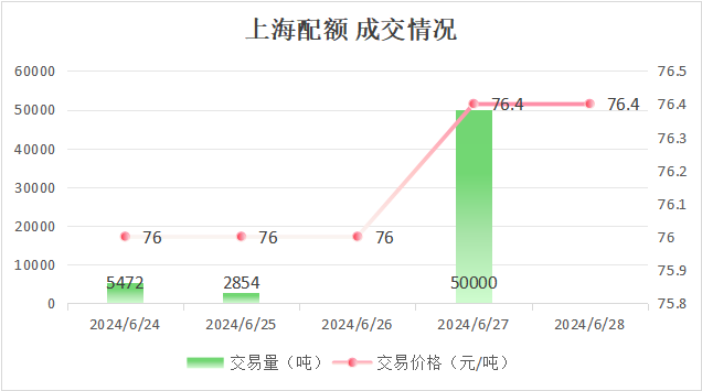 最高成交价76.4元/吨,最低成交价76元/吨,本周五收盘价为76元/吨。