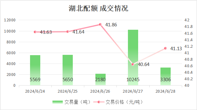 最高成交价41.86元/吨,最低成交价40.64元/吨,本周五收盘价为41.13元/吨。
