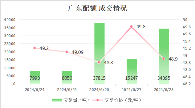 最高成交价49.8元/吨,最低成交价48.8元/吨,本周五收盘价为48.9元/吨。