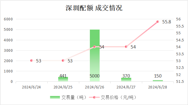 最高成交价55.8元/吨,最低成交价53元/吨,本周五收盘价为55.8元/吨。