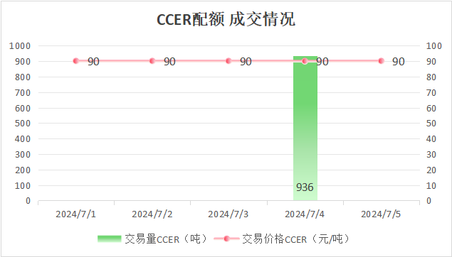 本周CCER配额总成交量936吨,总成交额84240元。