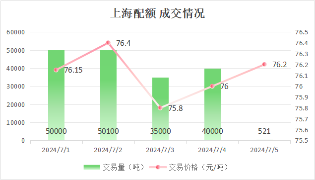 最高成交价76.4元/吨,最低成交价75.8元/吨,本周五收盘价为76.2元/吨。