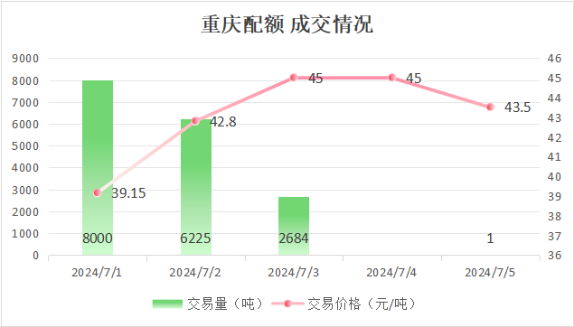 最高成交价45元/吨,最低成交价39.15元/吨,本周五收盘价为43.5元/吨。