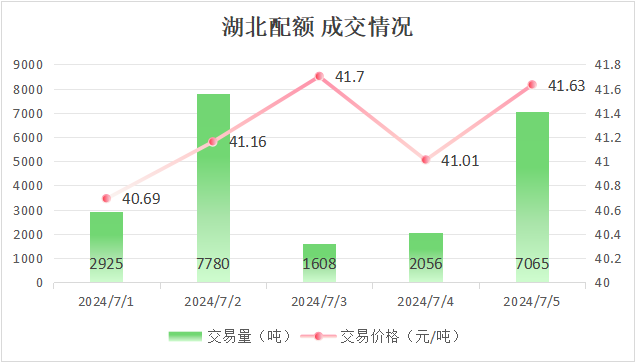 最高成交价41.7元/吨,最低成交价40.69元/吨,本周五收盘价为41.63元/吨。