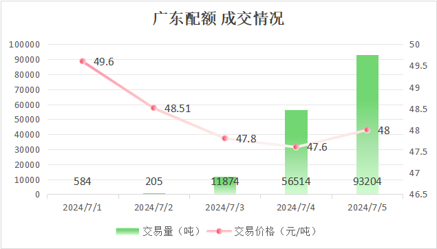 最高成交价49.6元/吨,最低成交价47.6元/吨,本周五收盘价为48元/吨。