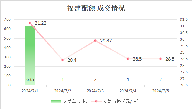 本周福建碳市场碳排放配额总成交量641吨,总成交额19998.34元。