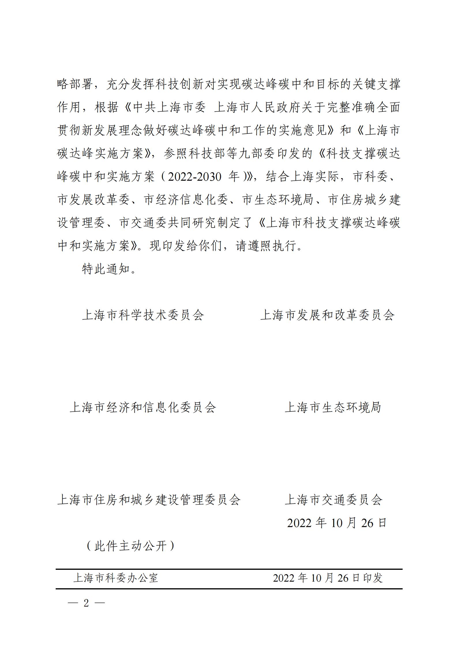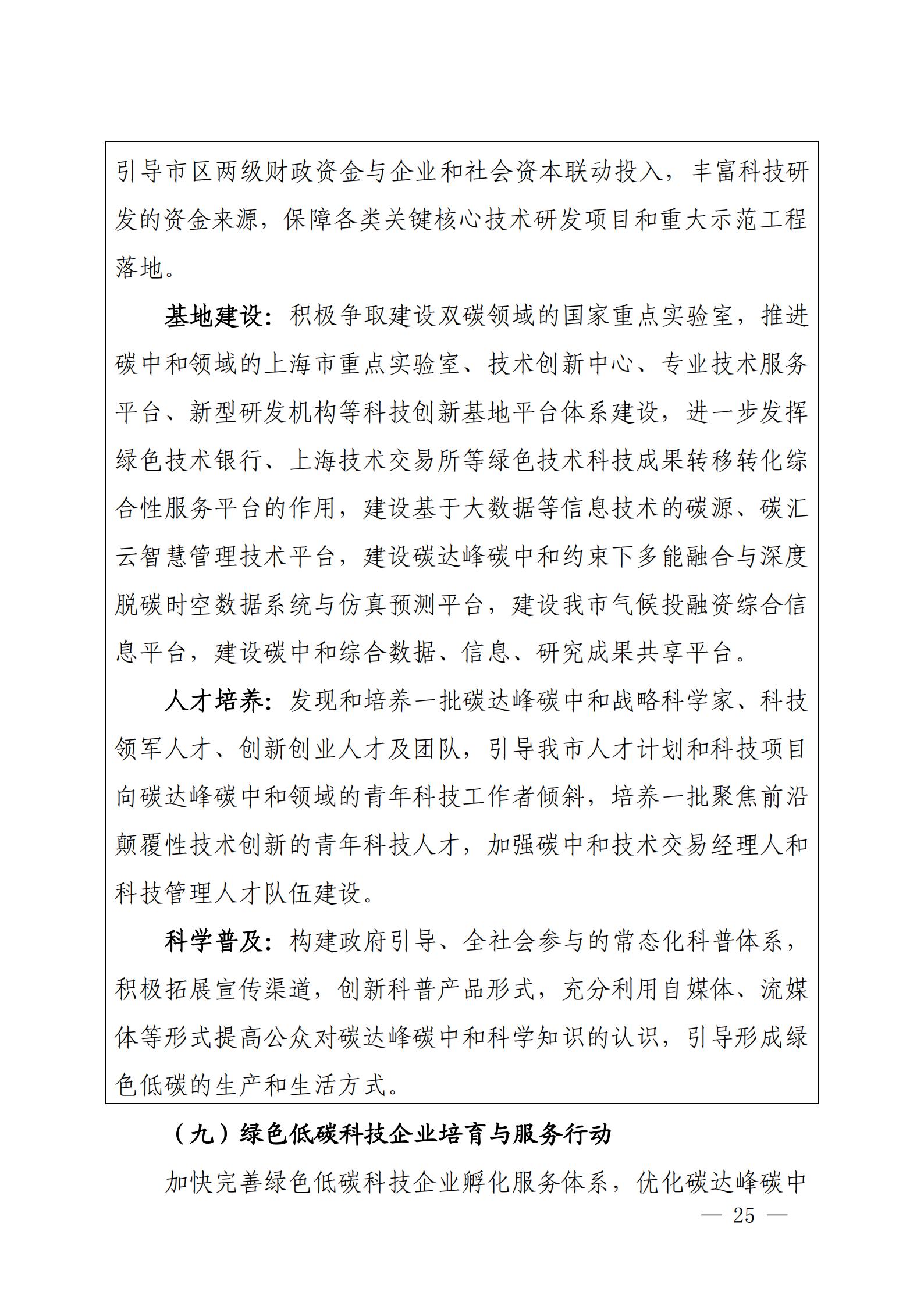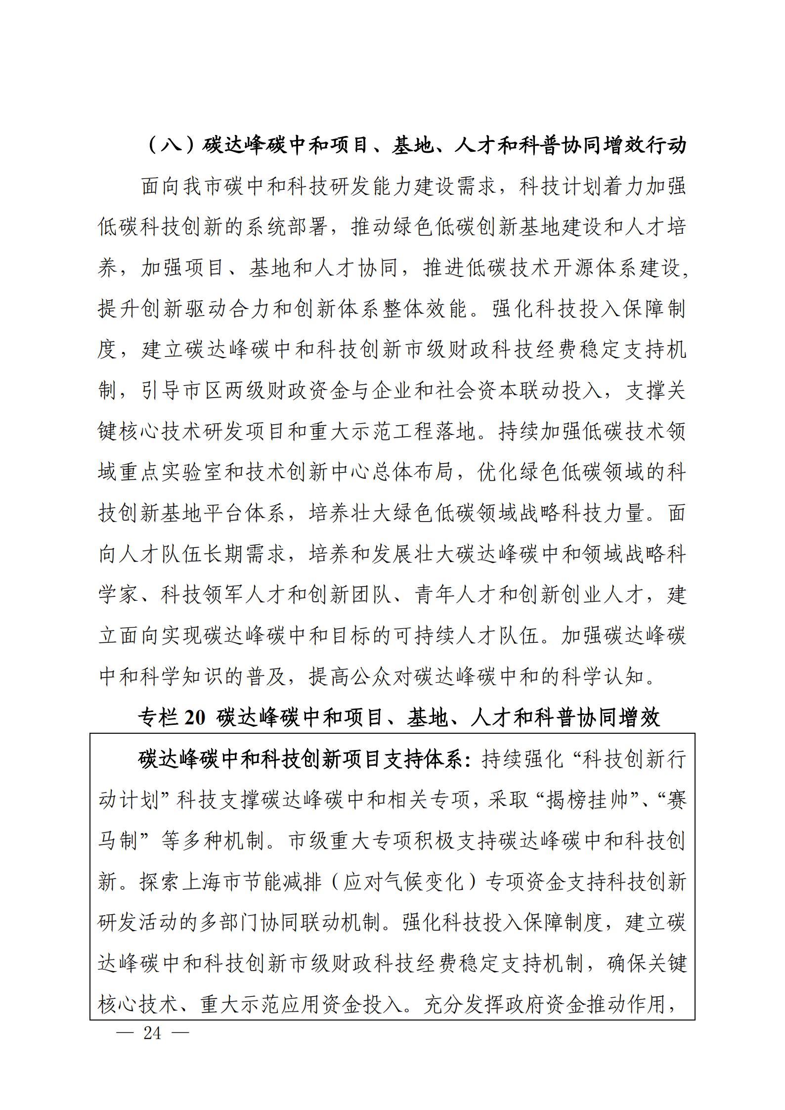 关于印发《上海市科技支撑碳达峰碳中和实施方案》的通知