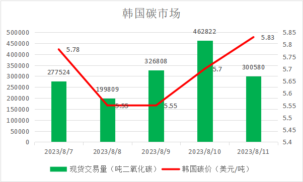本周韩国碳价最高价7.72美元/吨,最低价6.08美元/吨。