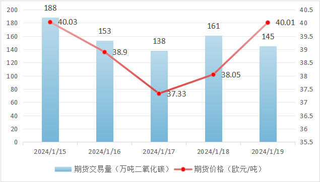 本周欧盟碳市场期货成交量为1.55亿吨。