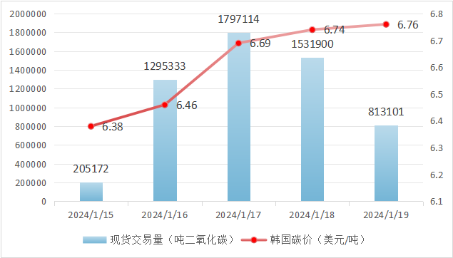 韩国碳价呈现上涨趋势。