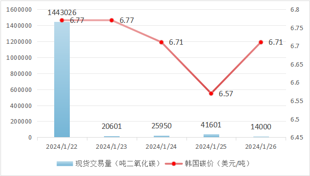 韩国碳价呈现下跌趋势。