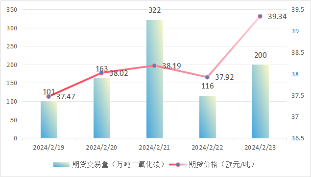 欧盟碳市场期货成交量为1.92亿吨,现货成交量为50.10万吨。