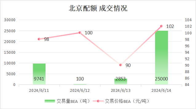 本周北京碳市场碳排放配额总成交量37694吨,总成交额3771388元。