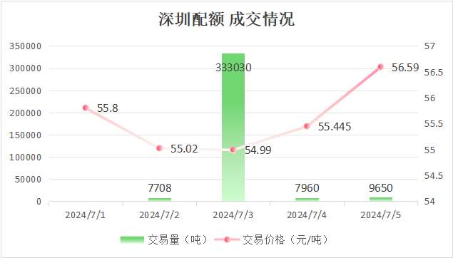 最高成交价56.59元/吨,最低成交价54.99元/吨,本周五收盘价为56.59元/吨。