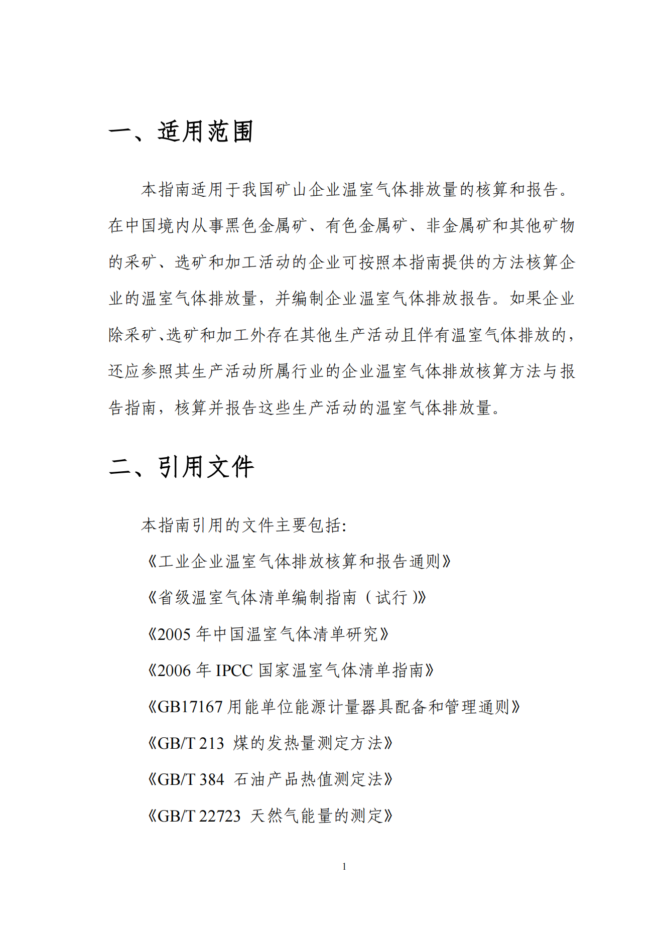 矿山企业 温室气体排放核算方法与报告指南 (试行)