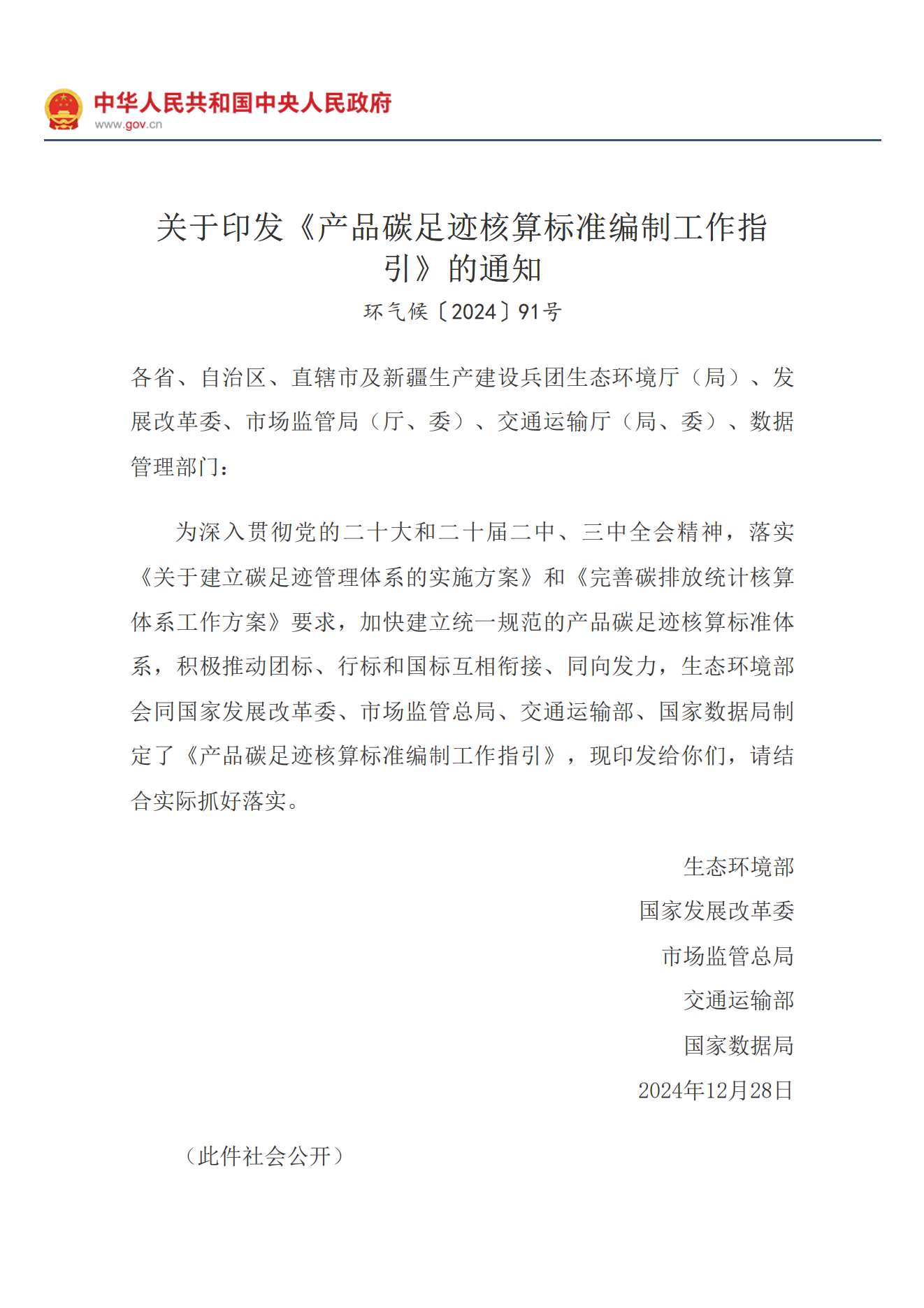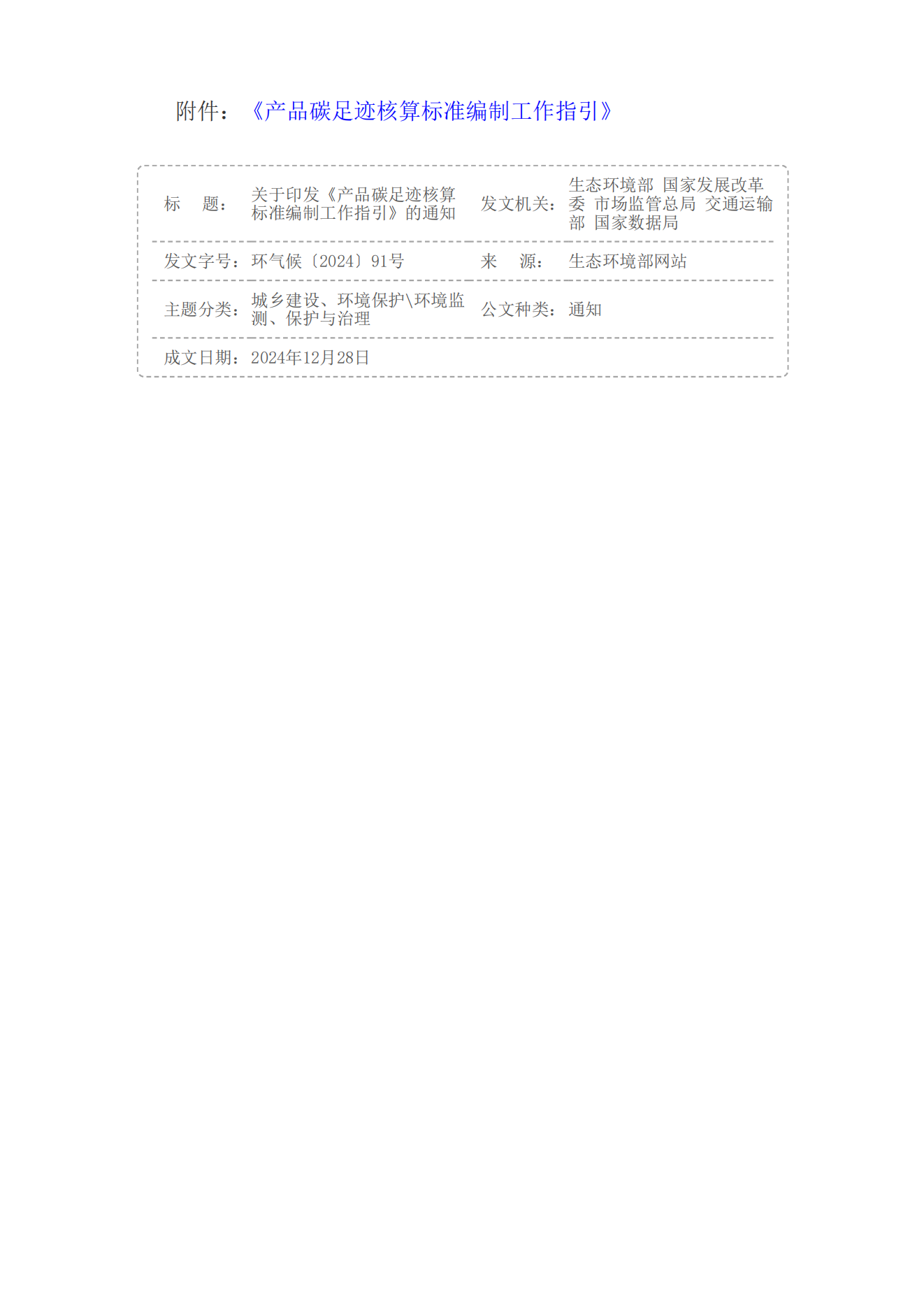 关于印发《产品碳足迹核算标准编制工作指引》的通知