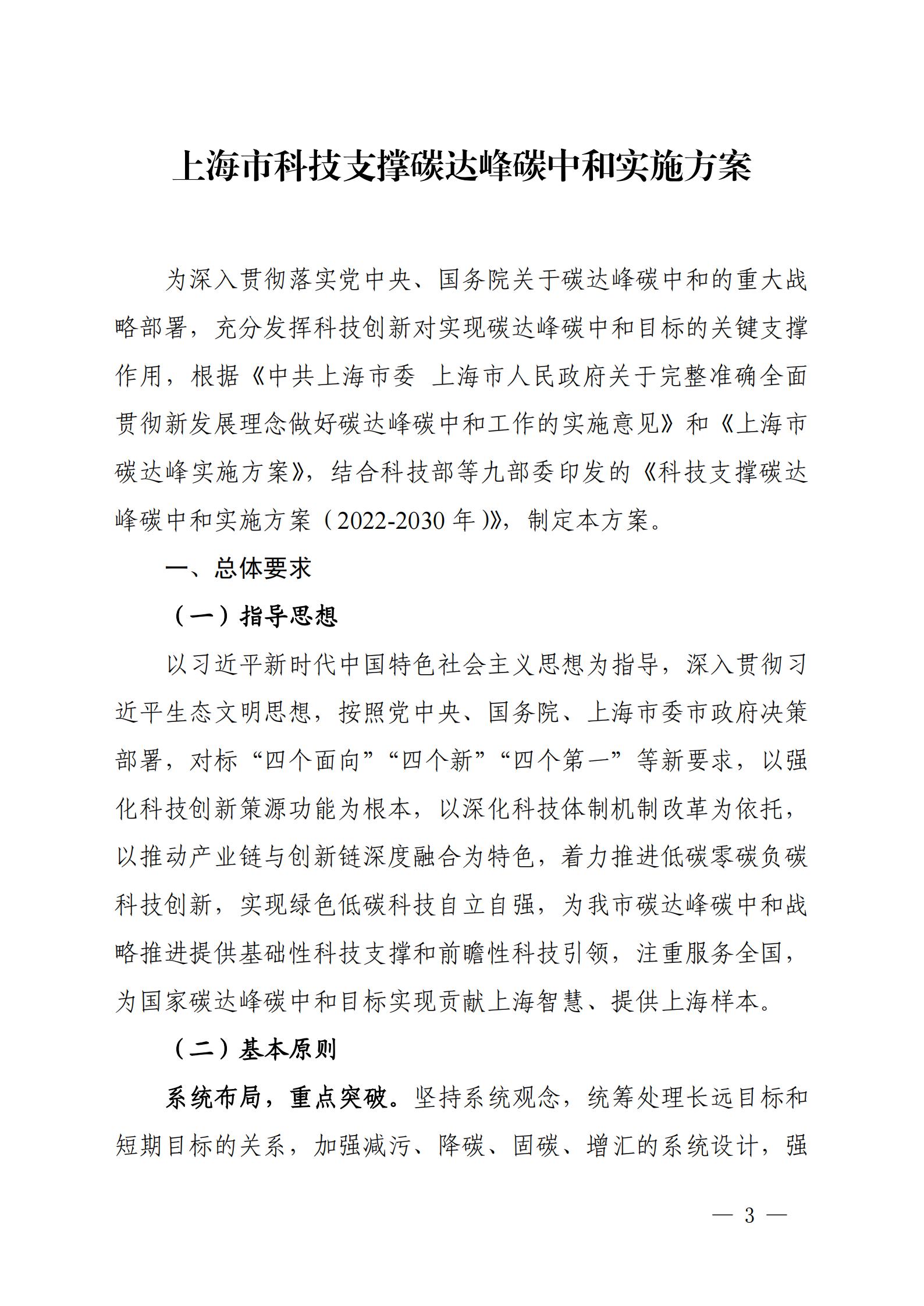 关于印发《上海市科技支撑碳达峰碳中和实施方案》的通知