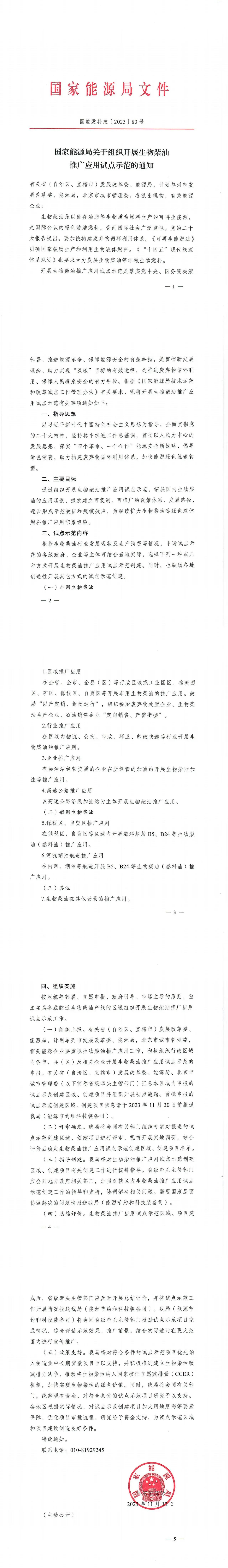 根据《国家能源局技术示范和改革试点工作管理办法》有关要求,现将开展生物柴油推广应用试点示范有关事项通知如下: