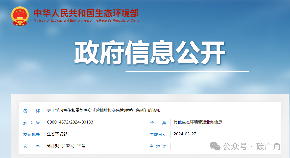 2024年1月25日,国务院总理李强签署第775号国务院令,公布《碳排放权交易管理暂行条例》(以下简称《条例》),自2024年5月1日起施行。