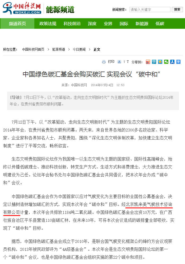 [中国科技网]中国绿色碳汇基金会购买碳汇实现会议碳中和